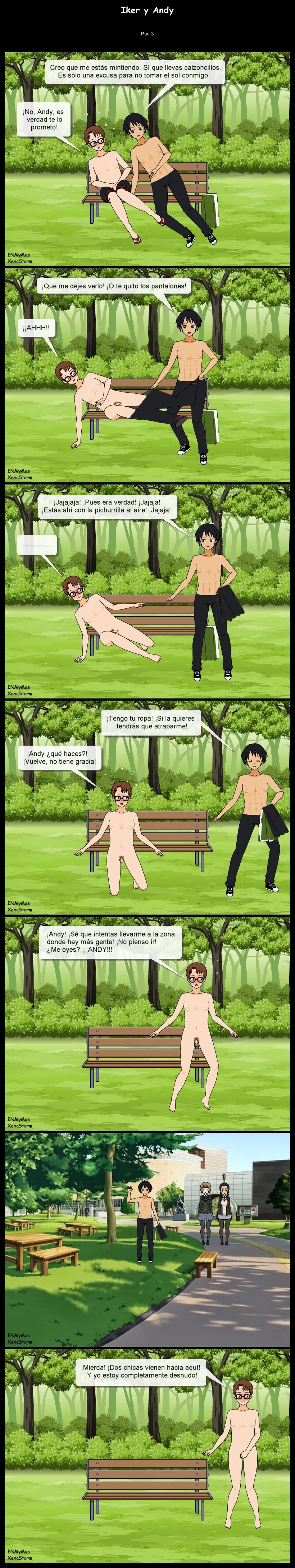 Blog sobre el fetiche de la vergüenza provocada por la desnudez. Desnudos en público, obligados o por accidente. Incluiremos dibujos, fotomontajes y relatos. Categorías principales: ENM (Embarrassed Nude Male, hombre desnudo avergonzado), CFNM (hombres desnudos con mujeres vestidas), CMNM (hombres desnudos con hombres vestidos)