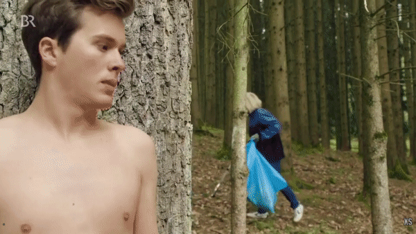 Tras perder toda su ropa en el bosque, un chico intentaba no ser visto desnudo por las personas que se iban cruzando en su camino.